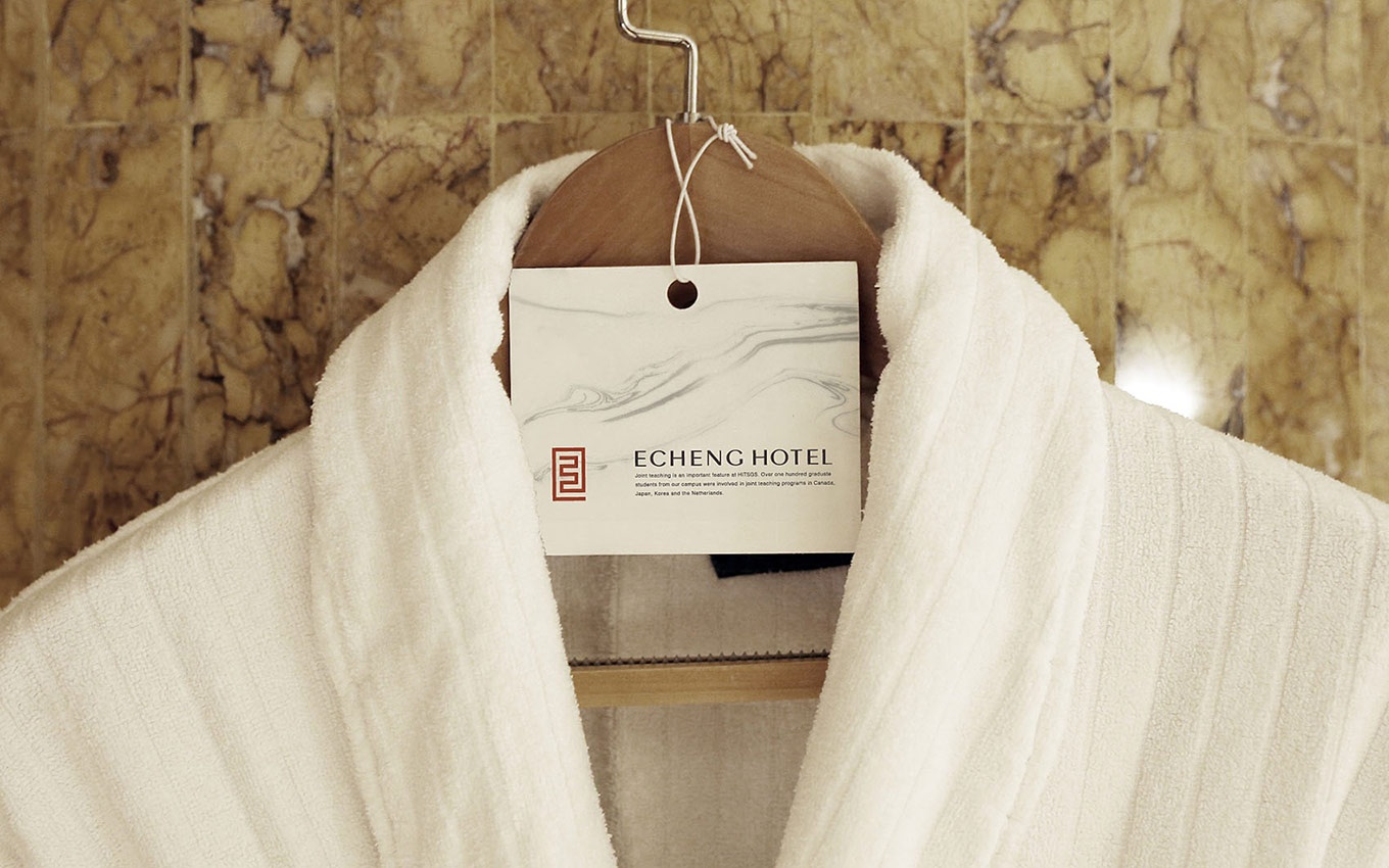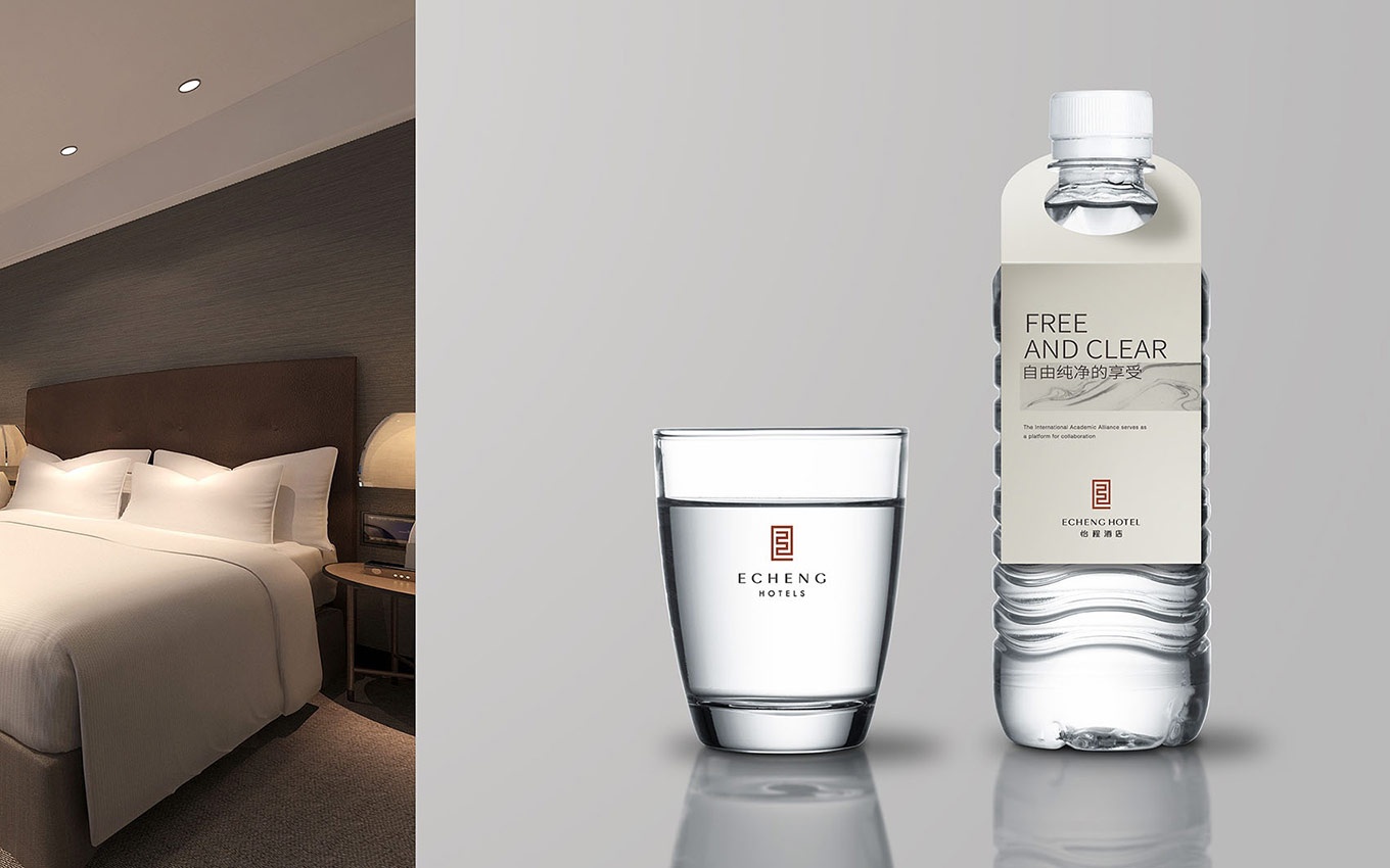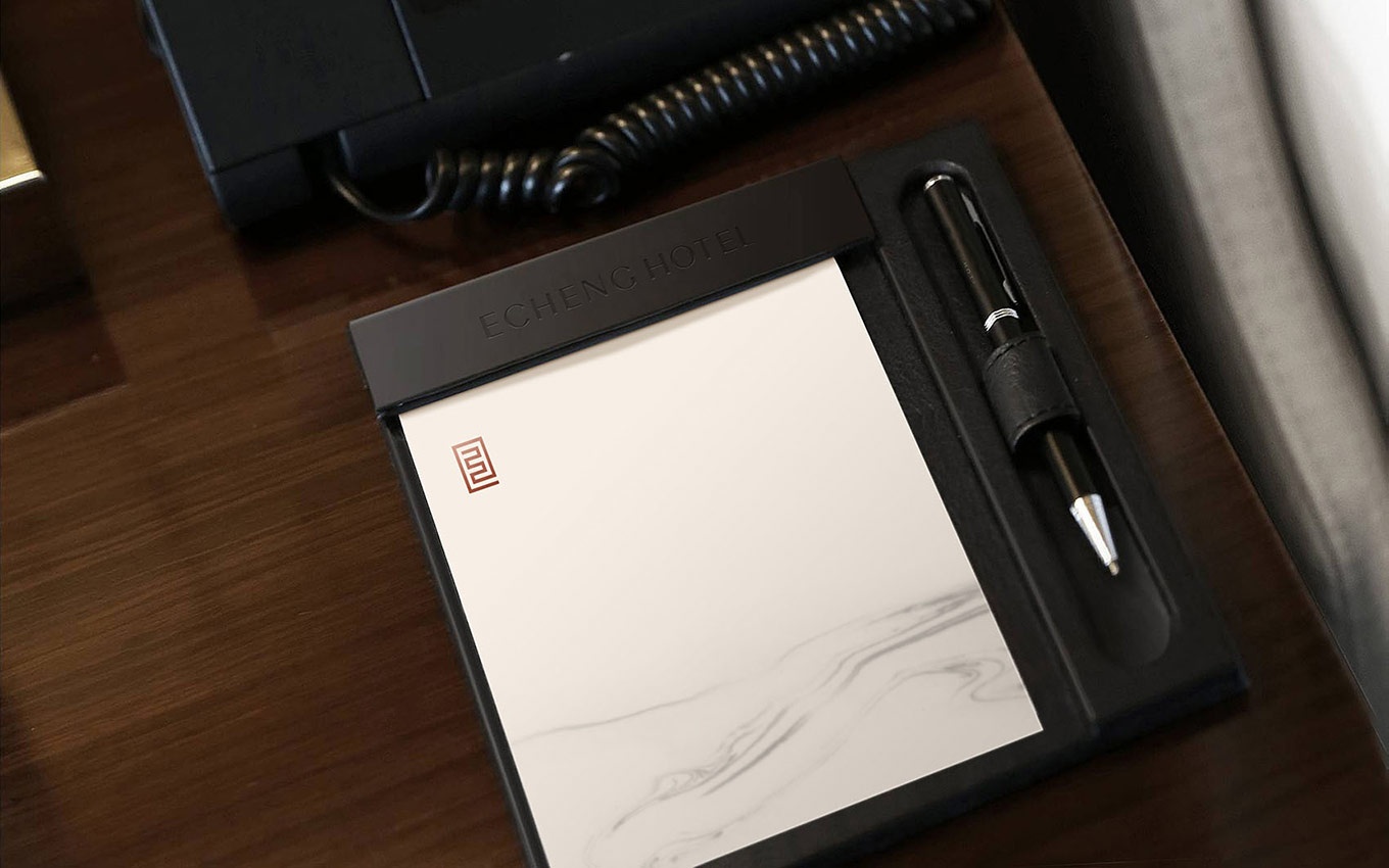 怡程酒店,Logo形如一條朱砂紅的東方龍, Logo造型隱含有怡程的英文首字E字結(jié)構(gòu)的咬合,E-EASTERN,代表東方,凸顯東方情懷和西方現(xiàn)代相結(jié)合的品牌特征。